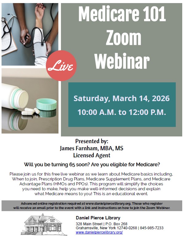 Please join us for this free live webinar as we learn about Medicare basics including, When to join, Prescription Drug Plans, Medicare Supplement Plans, and Medicare Advantage Plans (HMOs and PPOs). This program will simplify the choices you need to make, help you make well-informed decisions and explain what Medicare means to you! This is an educational event.