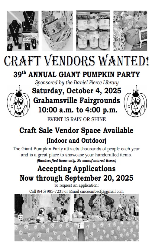 We are seeking vendors for the 2025 Giant Pumpkin Party.