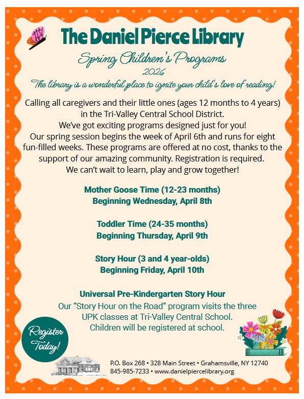 register online at danielpiercelibrary.org by April 1st. If you have any