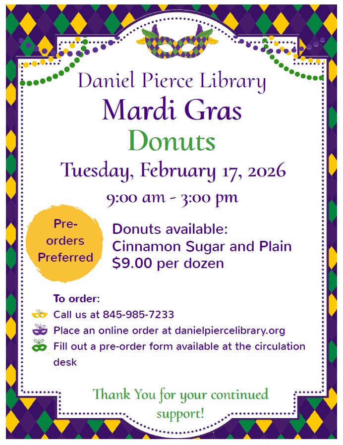 The library will be closed on Saturday, January 17th through Monday, January 19th in observance of Martin Luther King, Jr. Day.
